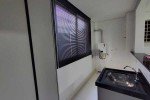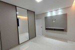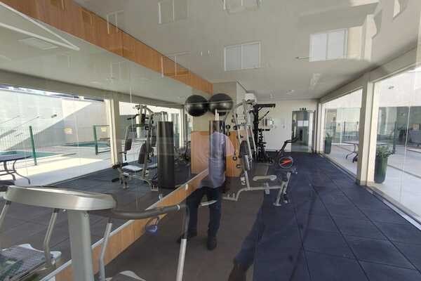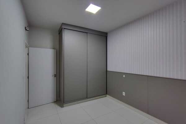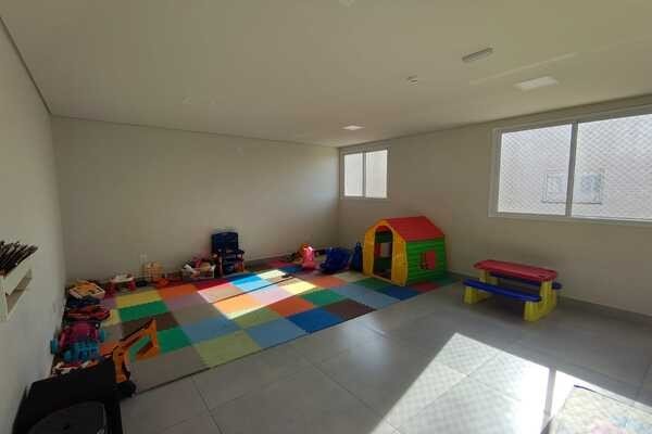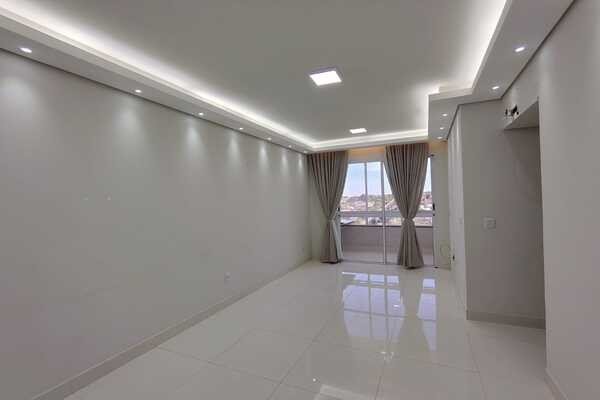 Sala com sacada e cortina, teto rebaixado em gesso, cozinha com armários, cooktop, coifa, área de serviço com armários, 3 quartos sendo um suíte e todos com armários e cortinas, banheiro social, todos os cômodos com instalação para ar-condicionado, piso de porcelanato, garagem para 2 carros coberta, condomínio com área de lazer, academia, piscina, salão de festa, quadra e brinquedoteca, incluso área util, privativa e de uso comum.