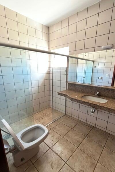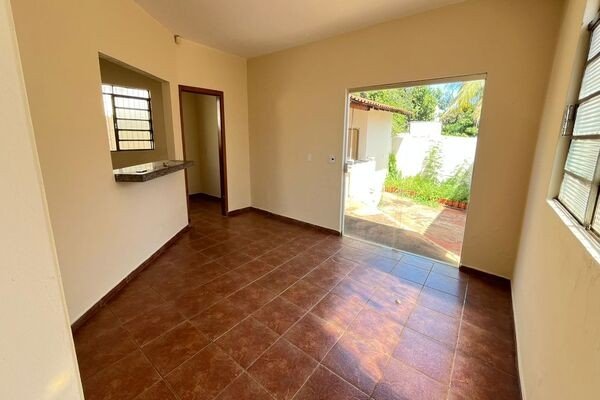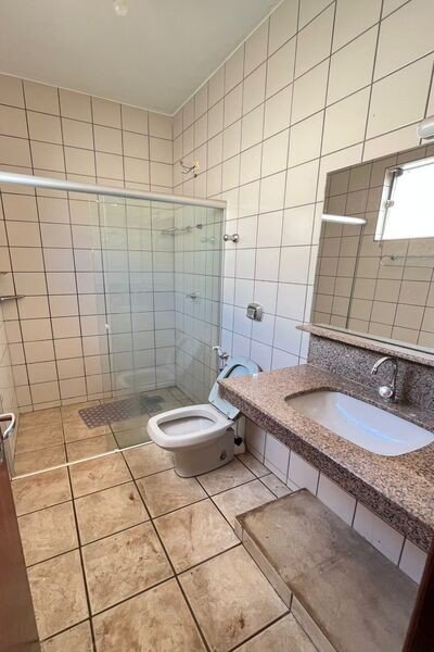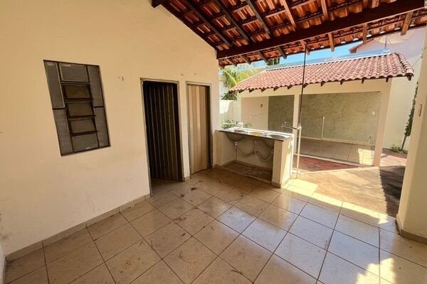 3 quartos sendo 1 suíte com closet, 2 salas, copa, cozinha, área de serviço com banheiro, despensa, garagem, piso de cerâmica e laje.