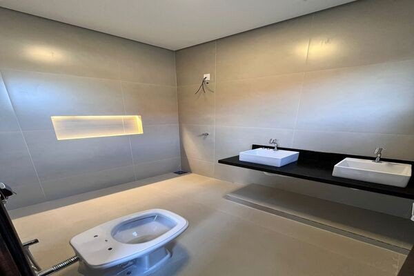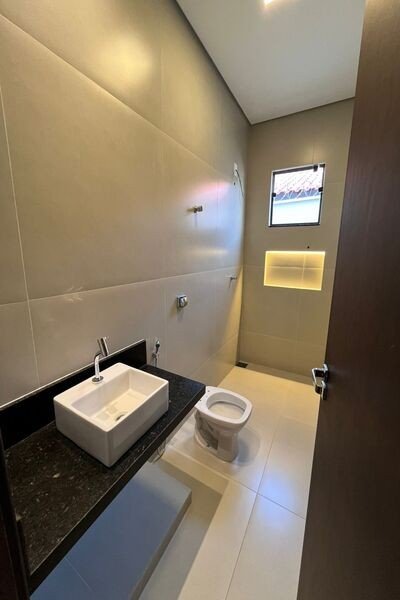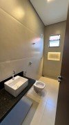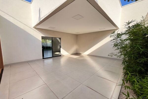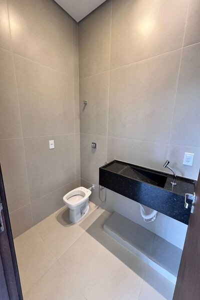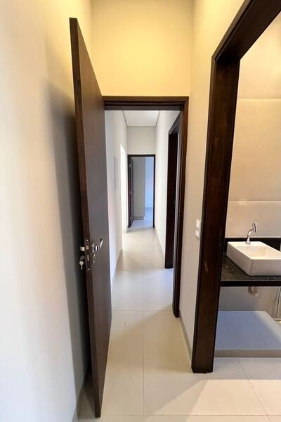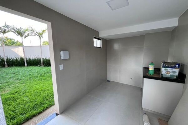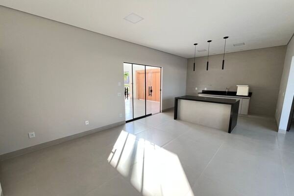 Sala, copa conjugada com cozinha, 3 quartos sendo 2 suítes e todos com armários, banheiro social, garagempara 2 carros, laje e piso porcelanato, interfone.