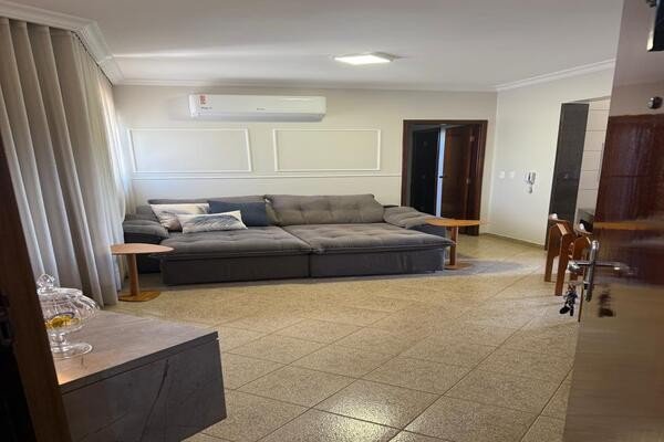 3 quartos sendo uma suíte com armários, todos quartos com ar-condicionado, sala conjugada com cozinha e ar-condicionado, armários e painel de TV, banheiro social, área de serviço com armários, garagem para 1 carro, piso cerâmica, apartamento com acabamento de gesso na laje, cortinas e cortinas blackout, piso cerâmica
