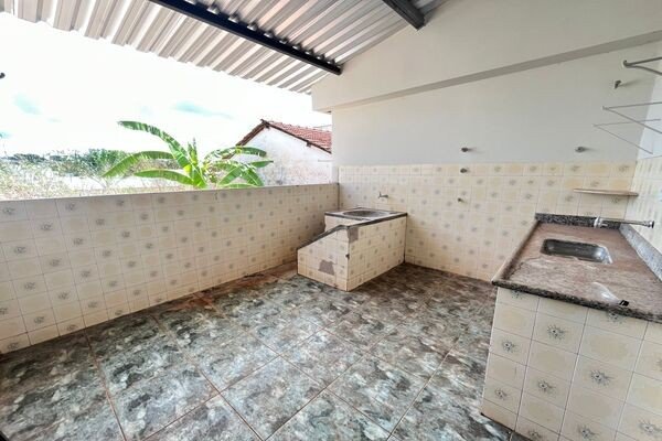 Sala, 3 quartos sendo dois suíte, banheiro social, cozinha, área de servico, quintal, garagem, laje e cerâmica.