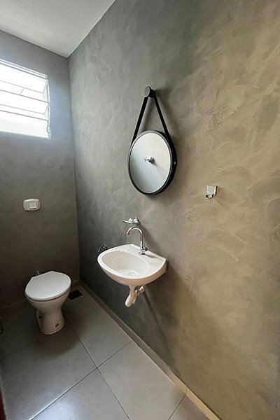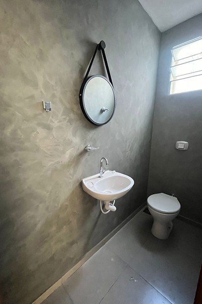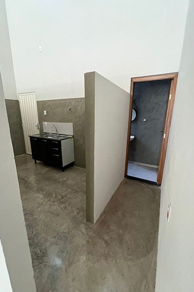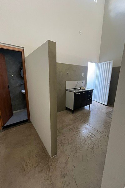2 cômodos comerciais com banheiros e cozinha, piso de cimento queimado polido, coberto com estrutura metálica, lote medindo 10x25m,
