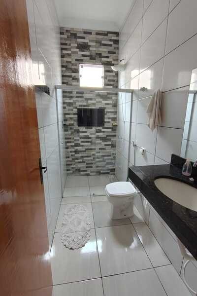 Varanda, entrada para 4 carros, sala conjugada com cozinha, armários abaixo da pia, cooktop, banheiro social com box, 2 quartos sendo 1 com ar-condicionado, área de serviço, quintal cimentado, interfone, portão eletrônico, câmeras, consertina, laje e cerâmica, sendo 12,5mx13m, casa com documentação em dia, alarme, portão com sensor e trava de segurança.