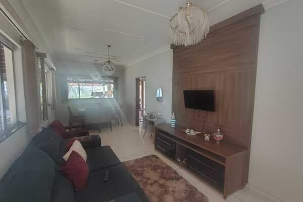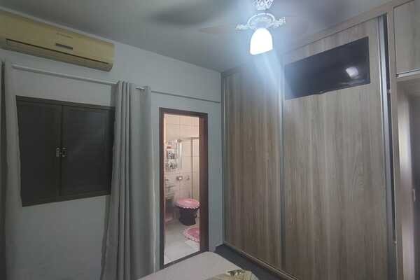 Sala, 3 quartos sendo uma suíte com armários, cozinha com armários, área de serviço conjugada com área de lazer, garagem para 3 carros, despensa, banheiro de serviço, quintal, laje, piso cerâmica, cerca elétrica, interfone, portão eletrônico, terreno medindo 12mx30m.