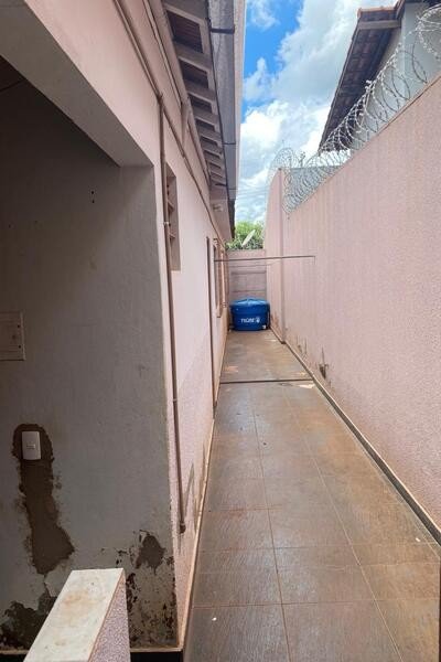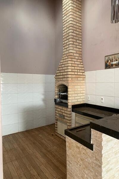 Sala, copa, cozinha, banheiro social, 3 quartos sendo 1 com armários, quartos com ventilador de teto, banheiro de serviço, despensa, área de lazer com churrasqueira, área de serviço, edícula.