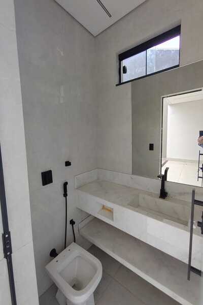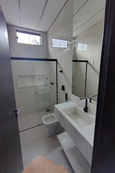 4 quartos sendo uma suíte, sendo 3 em baixo e 1 em cima, banheiro social em baixo e um banheiro suíte em cima, 2 salas, cozinha conjugada com área gourmet, área de serviço, despensa, garagem para 2 carros, laje, piso porcelanato, banheiro de serviço, interfone.