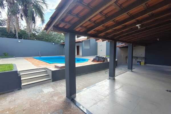 Casa toda reformada, com garagem para 2 carros e entrada para 2 carros, sala, copa conjugada com cozinha, 3 quartos sendo 2 com armários, banheiro social, área de serviço, varanda no fundo, piscina, área de lazer com churrasqueira, banheiro no fundo, despejo, quintal revestido com porcelanato e pedras, laje e porcelanato, motor eletrônico, interfone.