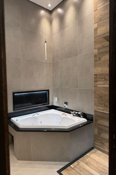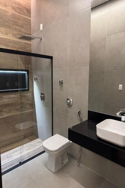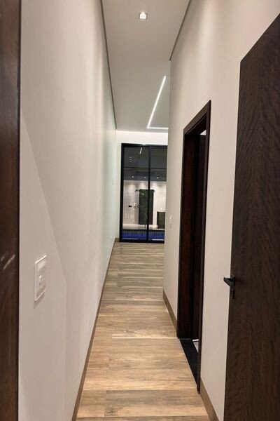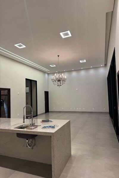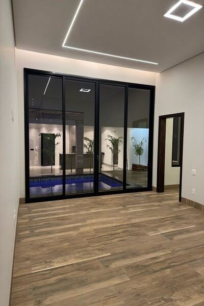Imóvel com sala ampla conjugada à cozinha, integrada a jardins de inverno, além de escritório e 4 quartos, todos suítes, sendo 2 com closet e uma delas equipada com banheira de hidromassagem. Os quartos também possuem jardins de inverno. Conta ainda com 2 banheiros sociais, área de serviço, despensa, estendal e área gourmet completa com churrasqueira e 2 banheiros de apoio. A área externa dispõe de piscina automatizada com aquecedor, hidromassagem e cascata, garagem coberta para 2 carros, entrada para vários veículos, portão eletrônico e interfone com câmera. O acabamento inclui piso em porcelanato e cobertura com telha sanduíche.