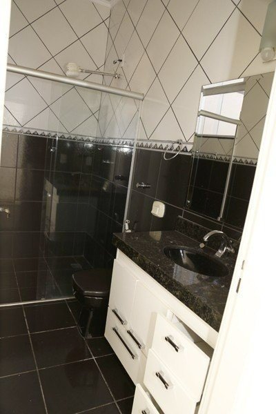 Sala conjugada com copa, 3 quartos sendo 1 suíte, cozinha com armário abaixo da pia, banheiro social, área de serviço, despensa, área de lazer com churrasqueira, quintal ladrilhado, garagem para 2 carros, laje e cerâmica, interfone, cerca elétrica, portão eletrônico, lote medindo 12mx30m.