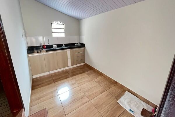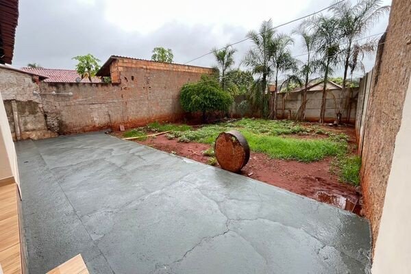 Sala, 3 quartos, copa, cozinha com armário, banheiro social, área de serviço, quintal, garagem para 2 carros, piso cerâmica, laje e forro de PVC.