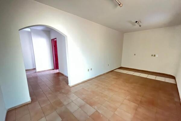 Sala, copa cojugada com cozinha, 3 quartos sendo 1 com suíte, banheiro social, área de serviço, garagem coberta, laje e cerâmica.