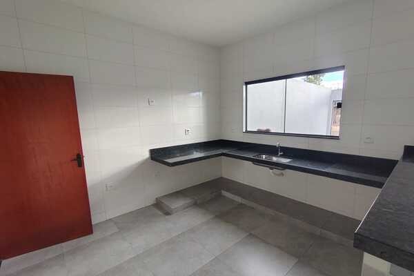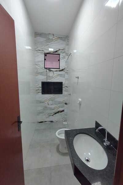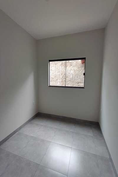 Casa nova, recém construída com sala conjugada com cozinha, 2 quartos, banheiro social, área de serviço, quintal e entrada para 3 carros, laje e cerâmica, lote medindo 6mx25m.
