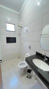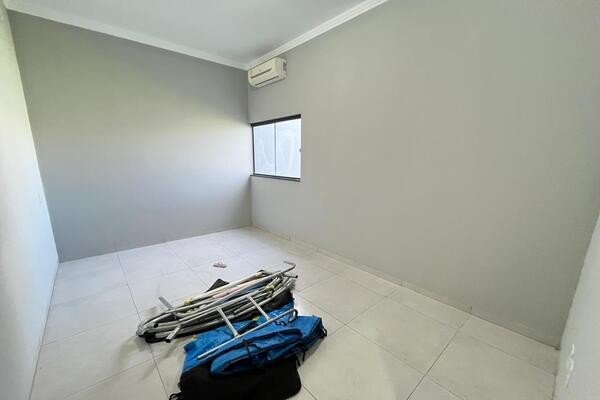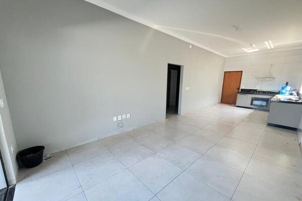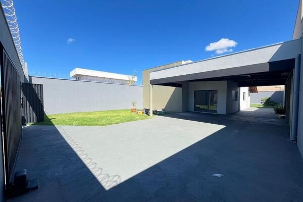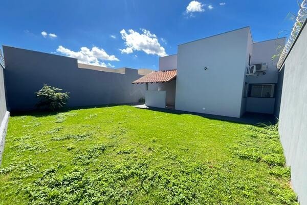 Sala conjugada com cozinha, com armários e forno, 3 quartos sendo 1 suíte e jardim de inverno e ar-condicionado, área de serviço, quintal gramado, garagem para 3 carros, laje e cerâmica.