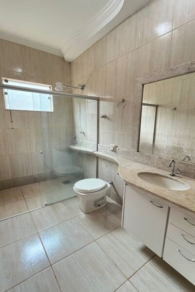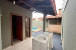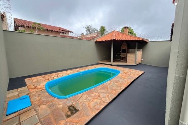 Sala, copa, 3 quartos sendo 1 suíte com armário, banheiro social, cozinha com armário, área coberta, área de serviço, despensa, lavabo, área de lazer com churrasqueira e piscina, depósito, garagem para 2 carros, laje e cerâmica, portão eletrônico, interfone, cerca elétrica.