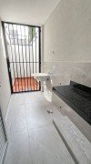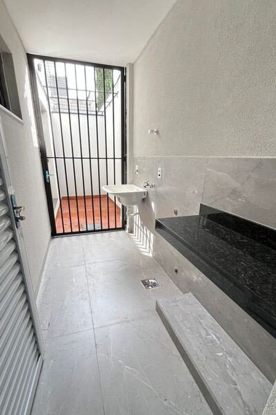 garagem para 1 carro, área de serviço, portão eletrônico, interfone, piso porcelanato e laje.