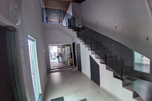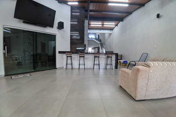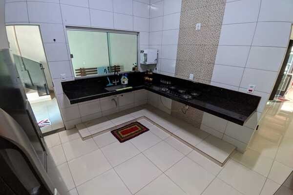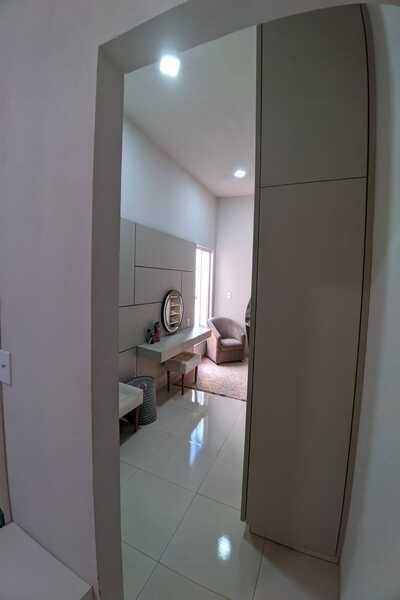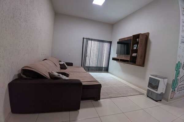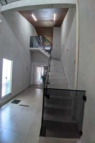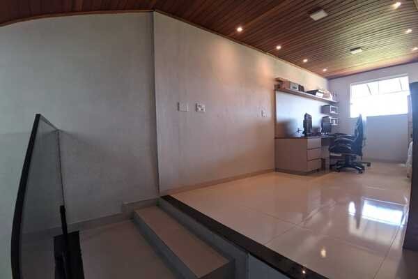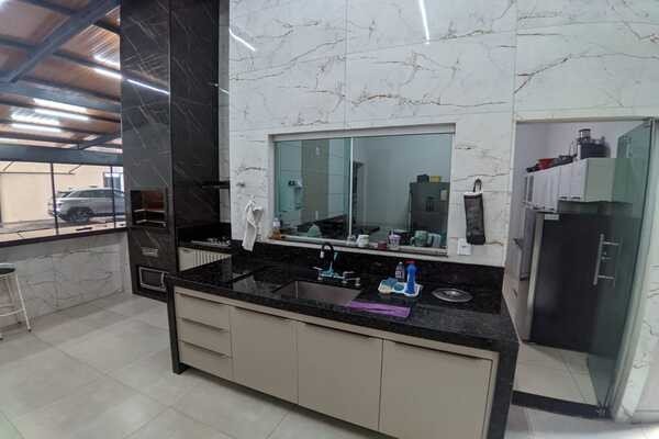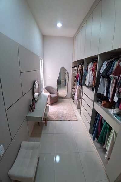 Sala ampla, copa conjugada com cozinha e área gourmet com armários, cozinha com armários e cooktop, sala de TV, 2 quartos sendo 1 suíte com closet e armários, jardim de inverno, lavabo, área de serviço, escritório com armários planejados, garagem para 4 carros, quintal, piso de porcelanato, laje e forro de lambril, portão eletrônico, interfone, cerca consertina, sistema de câmeras, sendo 14,11mx28,87m.