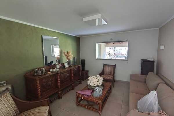 3 salas, lavabo, cozinha com armários, corredor com roupeiro, banheiro social, 5 quartos sendo sendo 2 suítes e todos com armários, área de serviço, dois cômodos na frente com banheiro, edícula nos fundos com dois cômodos forrados de lambril, piso de cerâmica, 2 cômodos nos fundos com banheiro, garagem para 2 carros, entrada para vários carros, casa com piso de cerâmica e taco, cerca elétrica, interfone portão eletrônico, 2 lotes medindo 14mx35m.