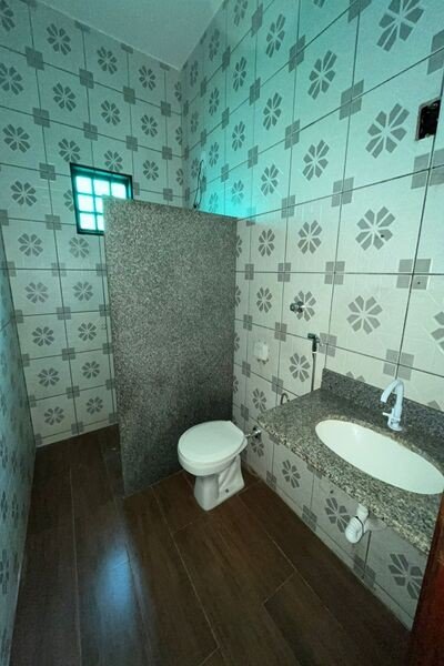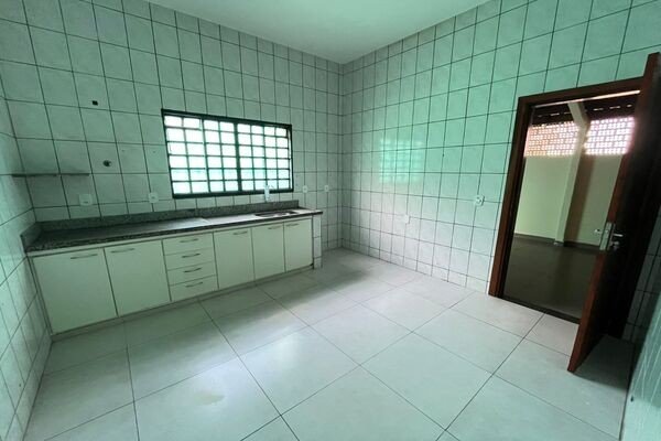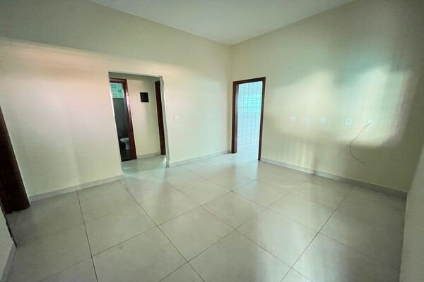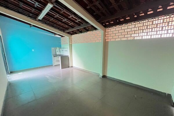 Sala, 3 quartos, banheiro social, cozinha com armário abaixo da pia, área de serviço, quintal cimentado, garagem para 1 carro e entrada para 3 carros, laje e cerâmica.