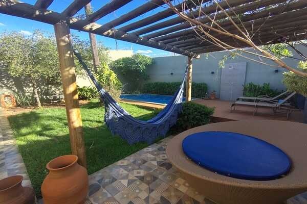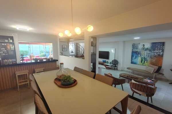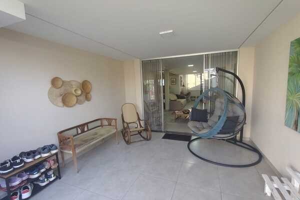 Alpendre, sala 2 ambientes, cozinha com armários, cooktop, área gourmet com churrasqueira e armários, quintal gramado, piscina aquecida com led e hidromassagem, área de serviço com armários, 4 quartos sendo 2 suítes e todos com armários sendo 1 com closet, e 3 quartos com ar-condicionado, banheiro social, sacada, laje e piso de porcelanato, garagem para 2 carros, portão eletrônico, interfone com câmera, cerca elétrica e consertina, energia fotovoltaica com 16 placas, terreno sendo 12x30m.