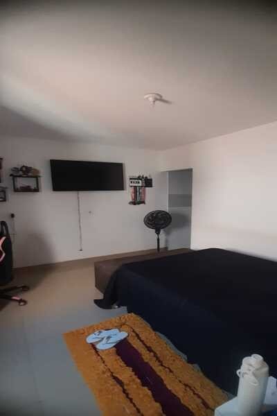 3 Quartos sendo uma suíte com banheira, banheiro social, cozinha, sala, área de lazer, garagem para 2 carros, garagem para 2 carros, piso cerâmica e porcelanato, forrada com pvc, portão eletrônico, interfone, quintal todo cimentado, todos os muros de alvenaria