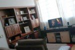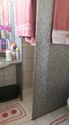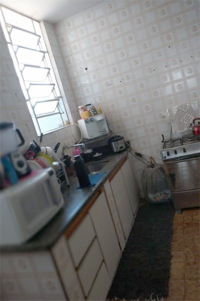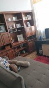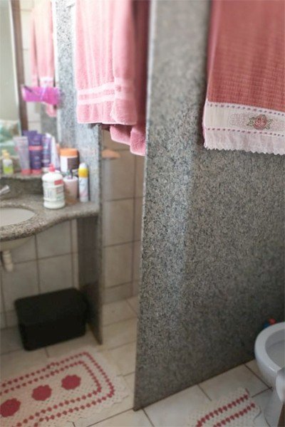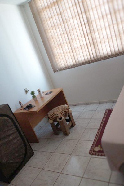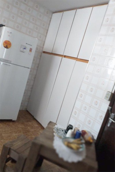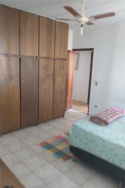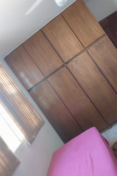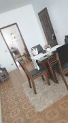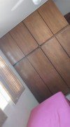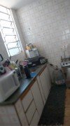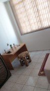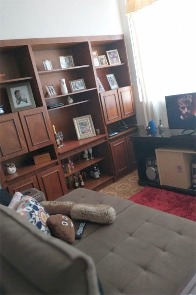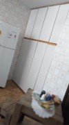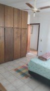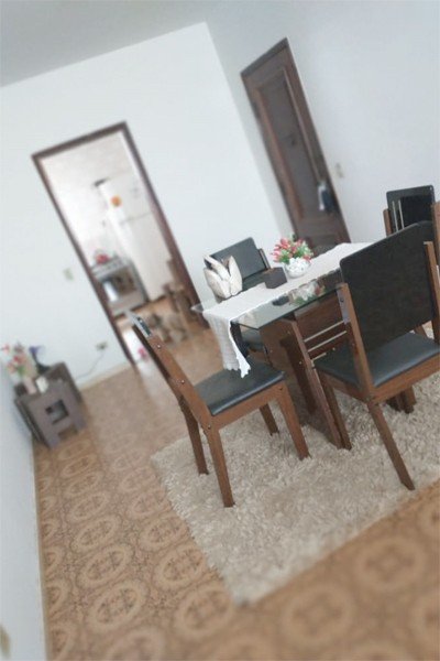 Apartamento com sala com estante de madeira e conjugada com copa, cozinha com armários, 03 quartos, sendo 01 suíte e com armários, área de serviço, despensa, ventiladores no teto, garagem para 01 carro, laje, cerâmica.