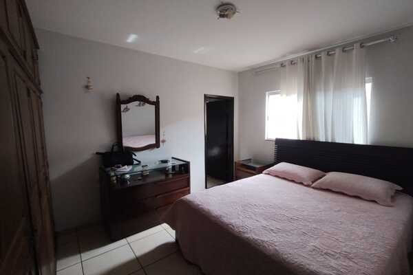 Casa localizada no setor sul da cidade, contendo sala, copa, 3 quartos sendo uma suíte, banheiro social, cozinha com armários, área de lazer conjugada com área de serviço, quintal cimentado, despensa, entrada para vários carros, laje e cerâmica, cerca elétrica com consertina, interfone, portão eletrônico, banheiro de serviço. Lote 12mx35m.