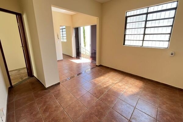 3 quartos sendo 1 suíte com closet, 2 salas, copa, cozinha, área de serviço com banheiro, despensa, garagem, piso de cerâmica e laje.