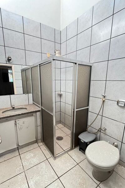 Sala, copa, 3 quartos sendo 1 suíte e todos com armários, banheiro social, cozinha com armários, quintal cimentado, área de serviço, área de lazer coberta, banheiro de serviço, despejo, laje e piso de tábua corrida.