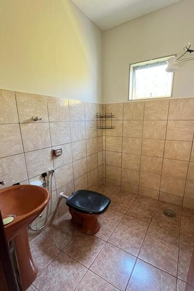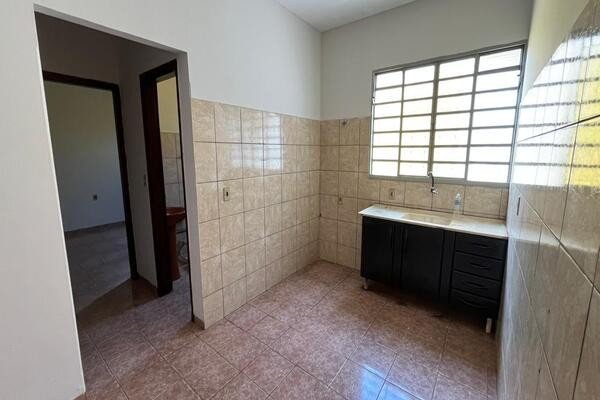 Sala, copa conjugada com cozinha, banheiro social, 2 quartos, área de serviço, quintal, garagem 1 carro, laje e cerâmica.