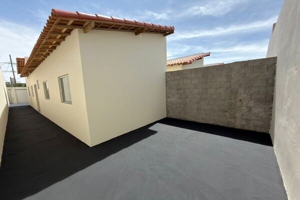 2 quartos, sala conjugada com cozinha, banheiro social, área de serviço, entrada para carro, laje e piso cerâmica, terreno cimentado e murado, terreno medindo 5mx30m com documentação inclusa.