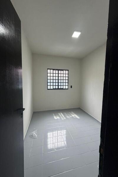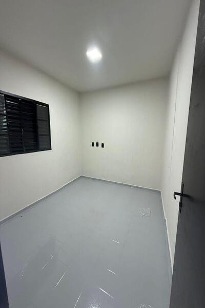 3 quartos, sala, cozinha, banheiro social, despensa, área de serviço, quintal, entrada para 3 carros, laje e piso cerâmica.
