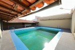 3 Quartos sendo um com armário, banheiro social, 2 salas, copa cozinha, área de serviço com churrasqueira, banheiro de serviço, cômodo de despejo, garagem para 1 carro coberto e 1 descoberto, piscina, piso cerâmica, laje.