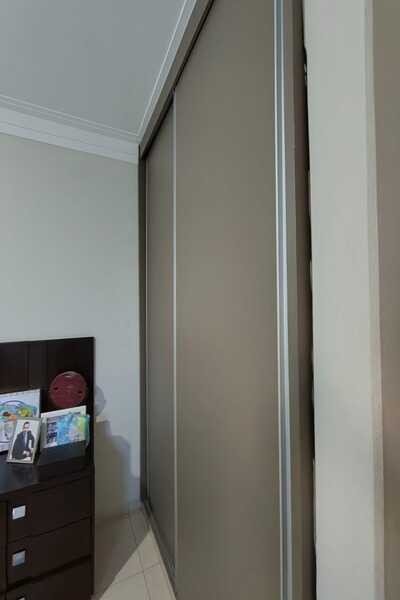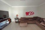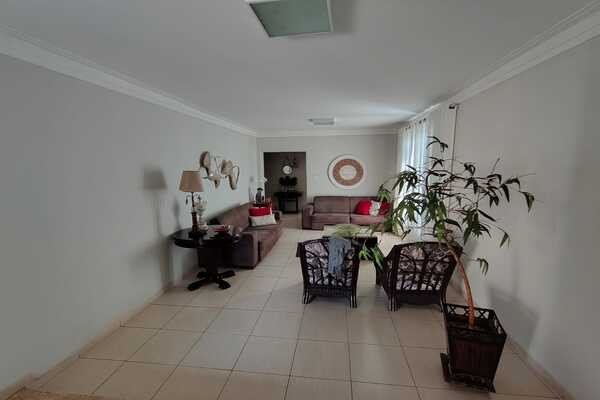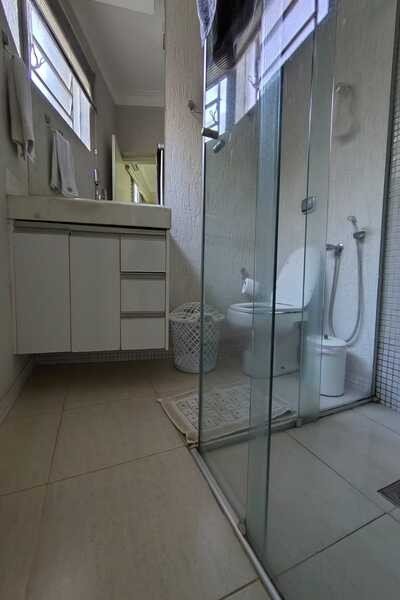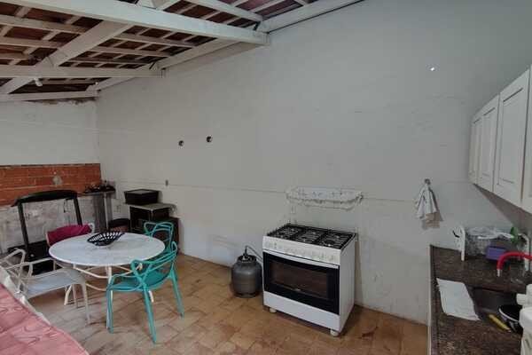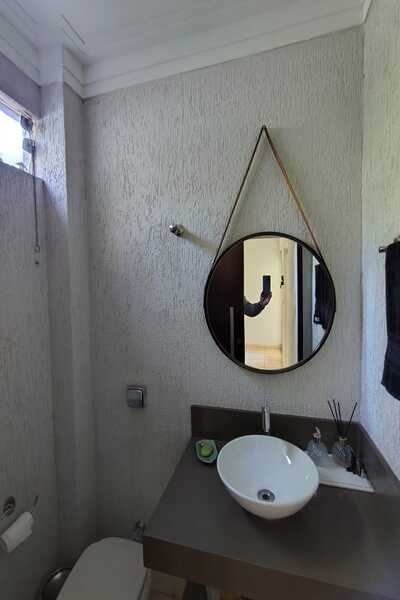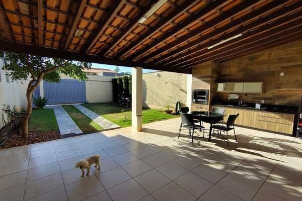 Jardim, sala de tv, garagem para 2 carros conjugada com área de lazer, entrada para 2 carros, sala, lavabo, 3 quartos sendo todos suítes com armários e ar-condicionado, sala de jantar, área de serviço, banheiro de serviço, cozinha, laje e cerâmica, portão eletrônico, interfone e cerca elétrica, um escritório com 4 salas, 1 cômodo com banheiro e ar-condicionado, mezanino, piso de cerâmica, forro de PVC e Laje.