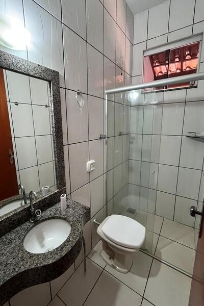 Sala ampla, copa conjugada com cozinha, 4 quartos sendo 1 suíte, 2 banheiros sociais, escritório, área de serviço com churrasqueira, banheiro de serviço, quintal, garagem para 2 carros, portão eletrônico, interfone.
