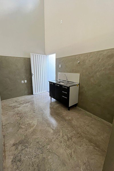 2 cômodos comerciais com banheiros e cozinha, piso de cimento queimado polido, coberto com estrutura metálica, lote medindo 10x25m,