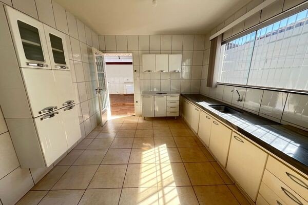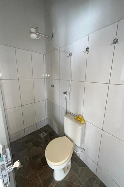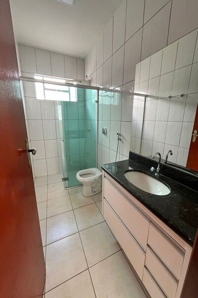 Sala, 3 quartos sendo 1 suíte e 2 com armários, todos os quartos com ventiladores de teto, copa, cozinha com armário, área de lazer com fogão a lenha, área de serviço, despejo, banheiro de serviço, laje e cerâmica, garagem para 1 carro.