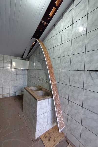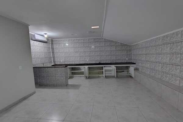 Sala, copa, 3 quartos sendo 1 suíte, banheiro social, cozinha com armários e ar-condicionado, dispensa, área de serviço, área de lazer, banheiro de serviço, garagem para 3 carros e entrada para vários carros, cerca consertina, portão eletrônico, interfone laje e piso de cerâmica, sendo 12mx30m.