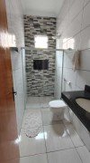 Varanda, entrada para 4 carros, sala conjugada com cozinha, armários abaixo da pia, cooktop, banheiro social com box, 2 quartos sendo 1 com ar-condicionado, área de serviço, quintal cimentado, interfone, portão eletrônico, câmeras, consertina, laje e cerâmica, sendo 12,5mx13m, casa com documentação em dia, alarme, portão com sensor e trava de segurança.