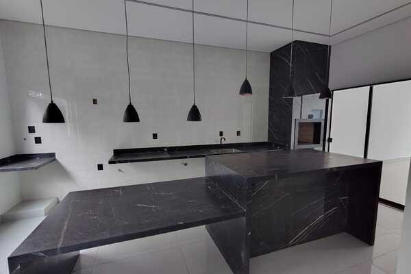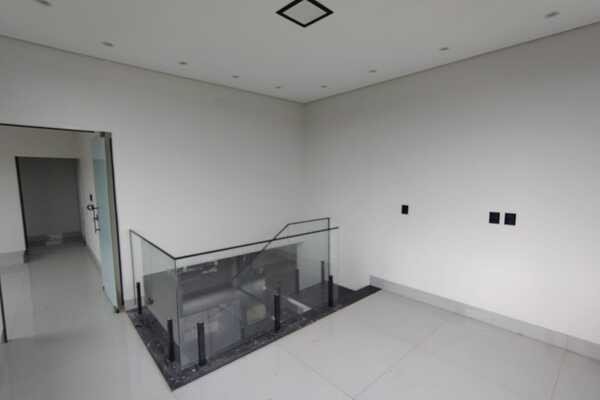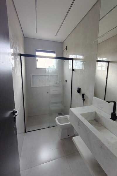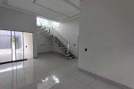 4 quartos sendo uma suíte, sendo 3 em baixo e 1 em cima, banheiro social em baixo e um banheiro suíte em cima, 2 salas, cozinha conjugada com área gourmet, área de serviço, despensa, garagem para 2 carros, laje, piso porcelanato, banheiro de serviço, interfone.