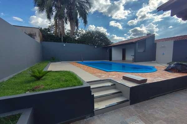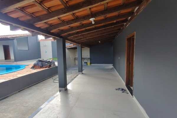 Casa toda reformada, com garagem para 2 carros e entrada para 2 carros, sala, copa conjugada com cozinha, 3 quartos sendo 2 com armários, banheiro social, área de serviço, varanda no fundo, piscina, área de lazer com churrasqueira, banheiro no fundo, despejo, quintal revestido com porcelanato e pedras, laje e porcelanato, motor eletrônico, interfone.