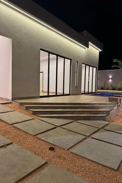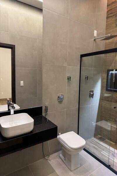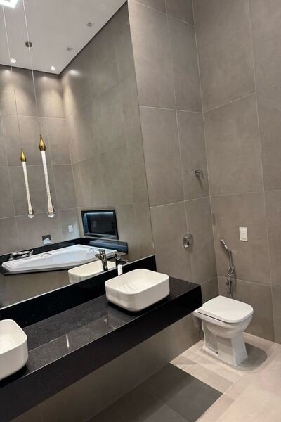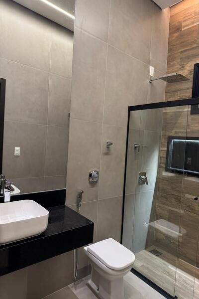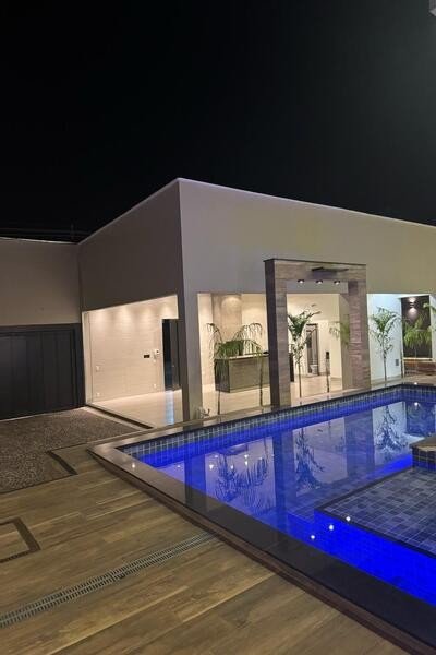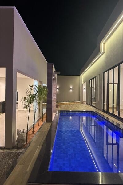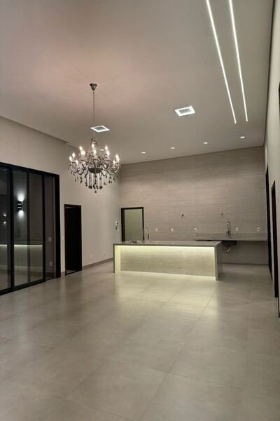 Imóvel com sala ampla conjugada à cozinha, integrada a jardins de inverno, além de escritório e 4 quartos, todos suítes, sendo 2 com closet e uma delas equipada com banheira de hidromassagem. Os quartos também possuem jardins de inverno. Conta ainda com 2 banheiros sociais, área de serviço, despensa, estendal e área gourmet completa com churrasqueira e 2 banheiros de apoio. A área externa dispõe de piscina automatizada com aquecedor, hidromassagem e cascata, garagem coberta para 2 carros, entrada para vários veículos, portão eletrônico e interfone com câmera. O acabamento inclui piso em porcelanato e cobertura com telha sanduíche.