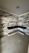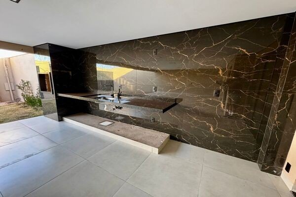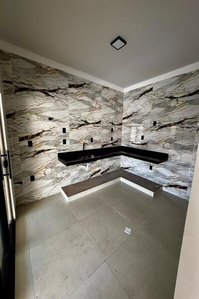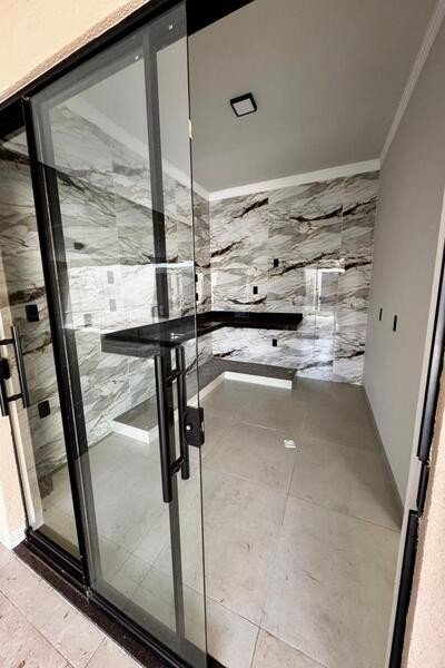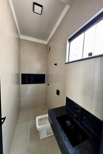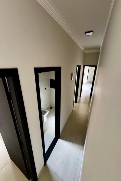Imóvel composto por sala integrada à garagem e área gourmet, 3 quartos, sendo um deles suíte, banheiro social, área de serviço, quintal e garagem coberta para dois carros, com espaço adicional para dois carros descobertos. A casa possui laje, piso em porcelanato e está edificada em um terreno de 8x30 metros.