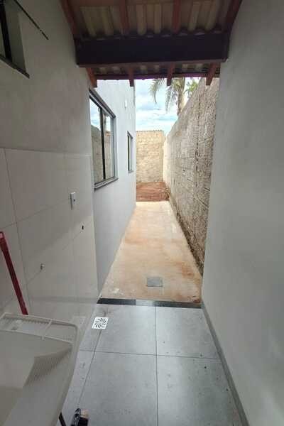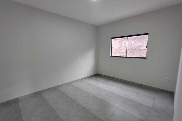 Casa nova, recém construída com sala conjugada com cozinha, 2 quartos, banheiro social, área de serviço, quintal e entrada para 3 carros, laje e cerâmica, lote medindo 6mx25m.