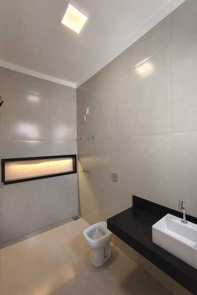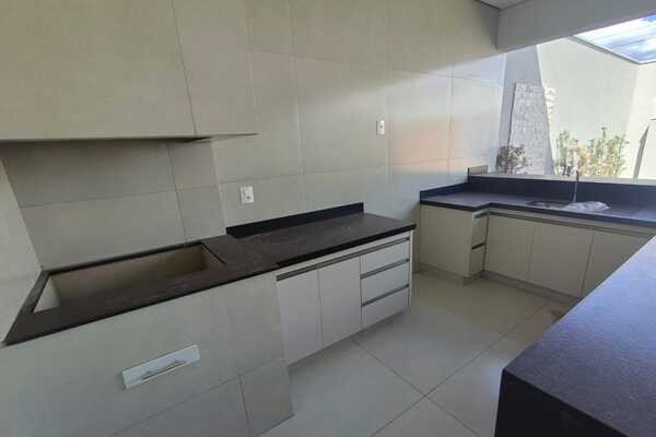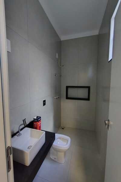 Casa nova, recém construída, com garagem para 2 carro e entrada para mais 2, jardim, área gourmet com churrasqueira e armários, sala com pé direito duplo e jardim de inverno, cozinha com armário e com jardim de inverno, área de serviço, despejo, 3 quartos sendo todos suítes e um dele com closet, todos os quartos com jardim de inverno, banheiro social, piso de porcelanto e laje, sendo 8mx30m.