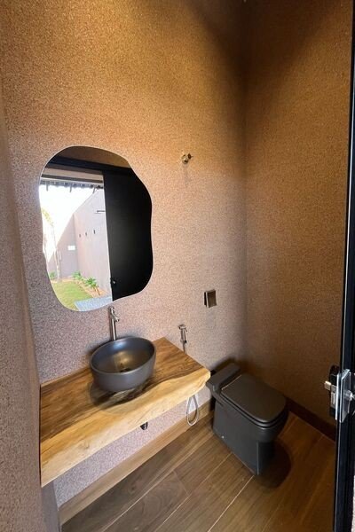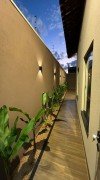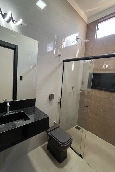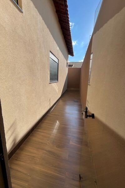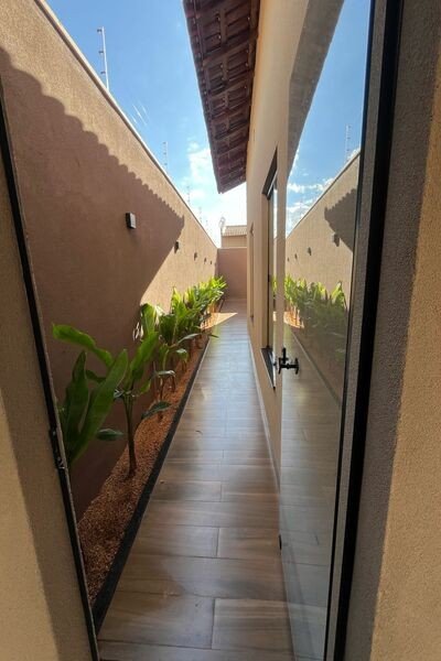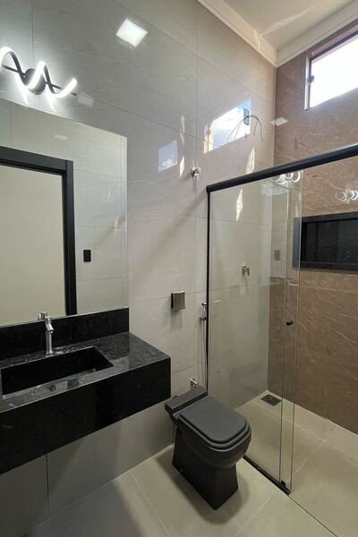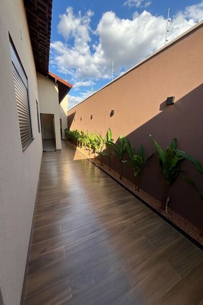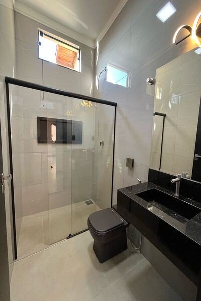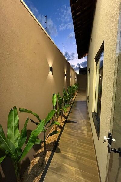Imóvel com 3 quartos, sendo 1 suíte master, sala ampla, cozinha funcional, banheiro social, área gourmet, lavanderia, varanda, despensa e garagem para até 6 carros. Conta com janelas dos quartos automatizadas em alumínio, estrutura toda em laje, projeto moderno, acabamento de alto padrão e interruptores inteligentes com controle via Wi-Fi. Em termos de segurança, dispõe de cerca elétrica, sistema de câmeras e vídeo porteiro.