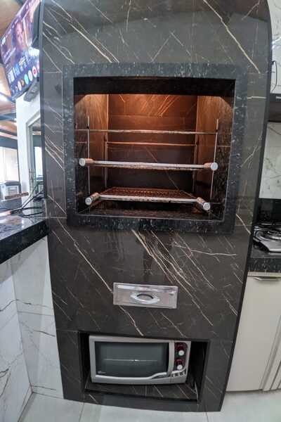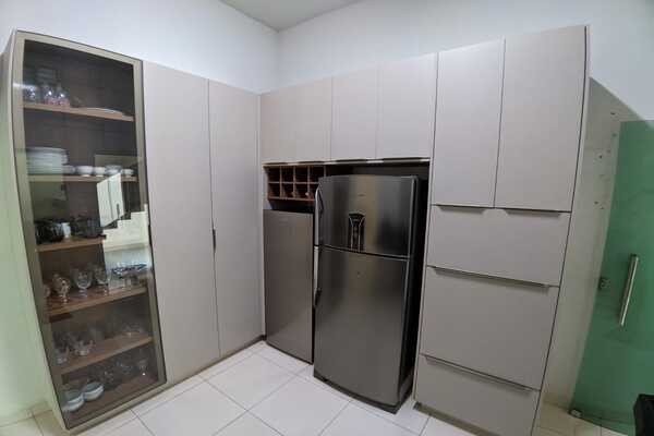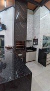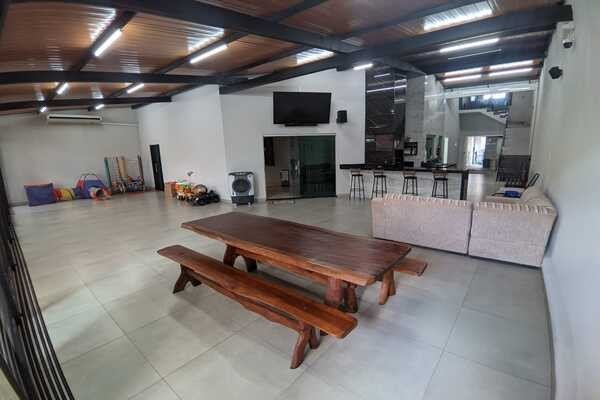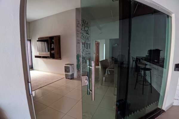 Sala ampla, copa conjugada com cozinha e área gourmet com armários, cozinha com armários e cooktop, sala de TV, 2 quartos sendo 1 suíte com closet e armários, jardim de inverno, lavabo, área de serviço, escritório com armários planejados, garagem para 4 carros, quintal, piso de porcelanato, laje e forro de lambril, portão eletrônico, interfone, cerca consertina, sistema de câmeras, sendo 14,11mx28,87m.