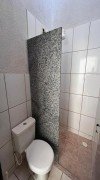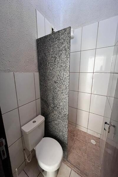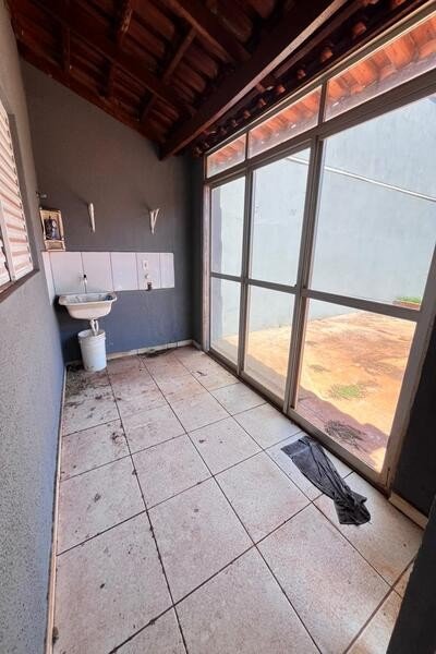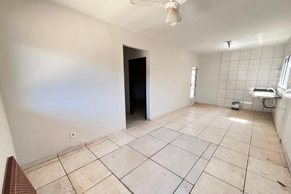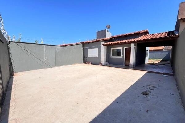 Sala conjugada com cozinha, 2 quartos, banheiro social, área de serviço, quintal cimentado e parte em terra, garagem para 1 carro, laje e cerâmica.