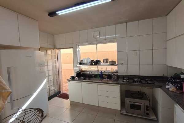 3 salas, lavabo, cozinha com armários, corredor com roupeiro, banheiro social, 5 quartos sendo sendo 2 suítes e todos com armários, área de serviço, dois cômodos na frente com banheiro, edícula nos fundos com dois cômodos forrados de lambril, piso de cerâmica, 2 cômodos nos fundos com banheiro, garagem para 2 carros, entrada para vários carros, casa com piso de cerâmica e taco, cerca elétrica, interfone portão eletrônico, 2 lotes medindo 14mx35m.