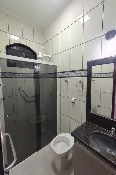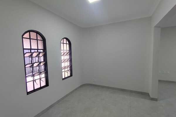 Sala, escritório, 3 quartos sendo uma suíte e todos com armários, banheiro social, cozinha com armário, área de serviço, banheiro de serviço, despensa, garagem para 2 carros, laje e piso porcelanato, cerca elétrica, consertina, portão eletrônico e interfone, terreno 10x30m.