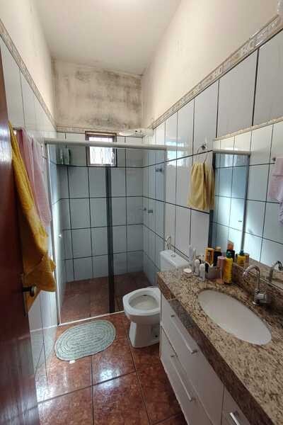 Garagem para 2 carros, jardim, sala, banheiro social, 3 quartos sendo 1 suíte com armário embutido, copa conjugada com cozinha, armários abaixo da pia, área de serviço fechada, despensa, área nos fundos, área para churrasco com pia, quintal cimentado, laje, cerâmica, portão eletrônico, interfone, lote 12mx30m.